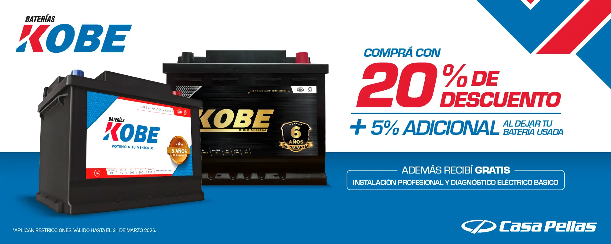 Kobe es la marca de baterías fabricada con tecnología americana que brinda mayor durabilidad y no necesitan de mantenimiento. Casa Pellas es distribuidor autorizado para Nicaragua.